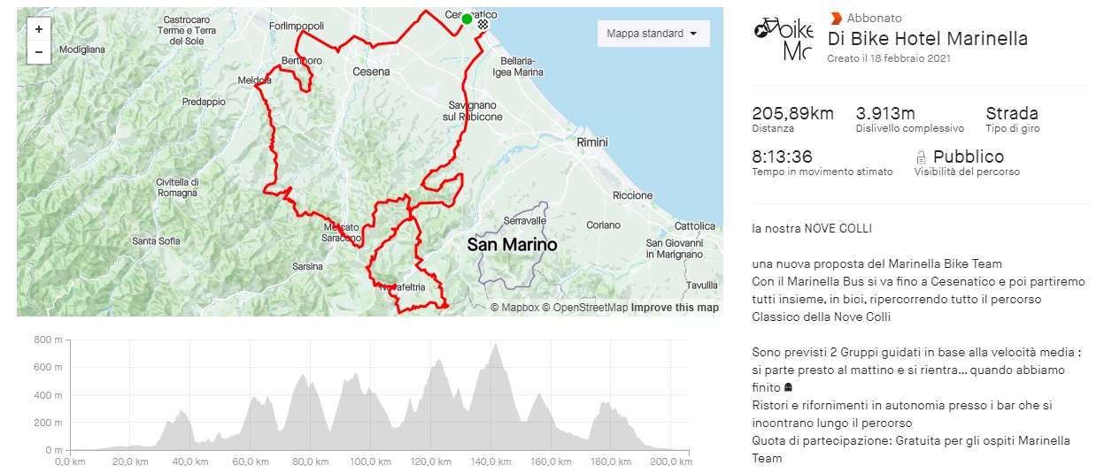 Con il Marinella Bus si va fino a Cesenatico e poi partiremo tutti insieme, in bici, ripercorrendo tutto il percorso Classico della Nove Colli
