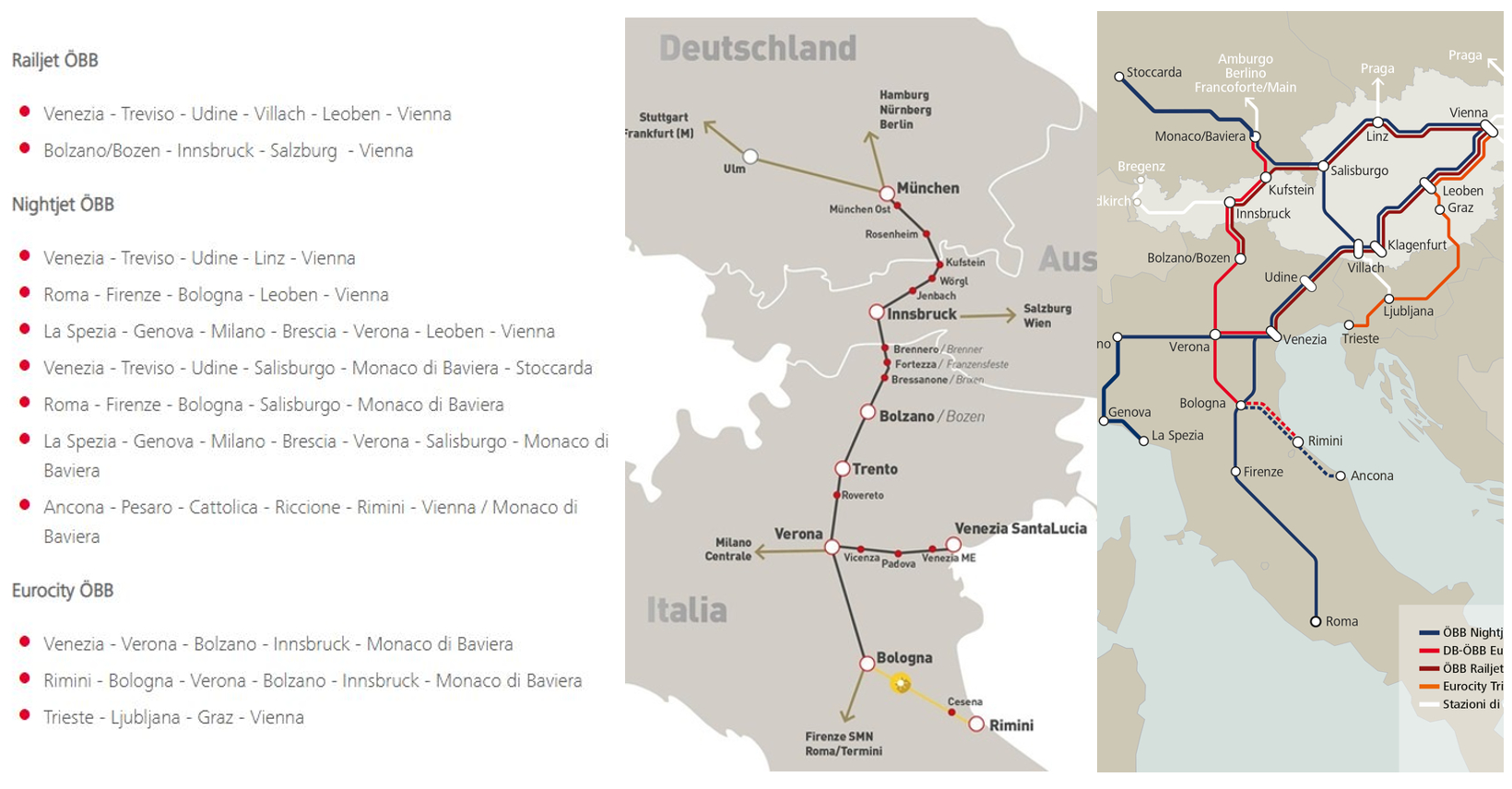 Eine neue ÖBB Nightjet-Verbindung (der Nachtzug) wird aktiv sein, die eine saisonale Linie von München, Salzburg und Wien, genau mit der Adriaküste, bis nach Ancona anbieten wird. Alle laufen seit Sommer 2023 mit Stopps in Rimini, Riccione und Cattolica in der Romagna. Der Zug wird von der bayerischen Landeshauptstadt und der österreichischen Hauptstadt abfahren.